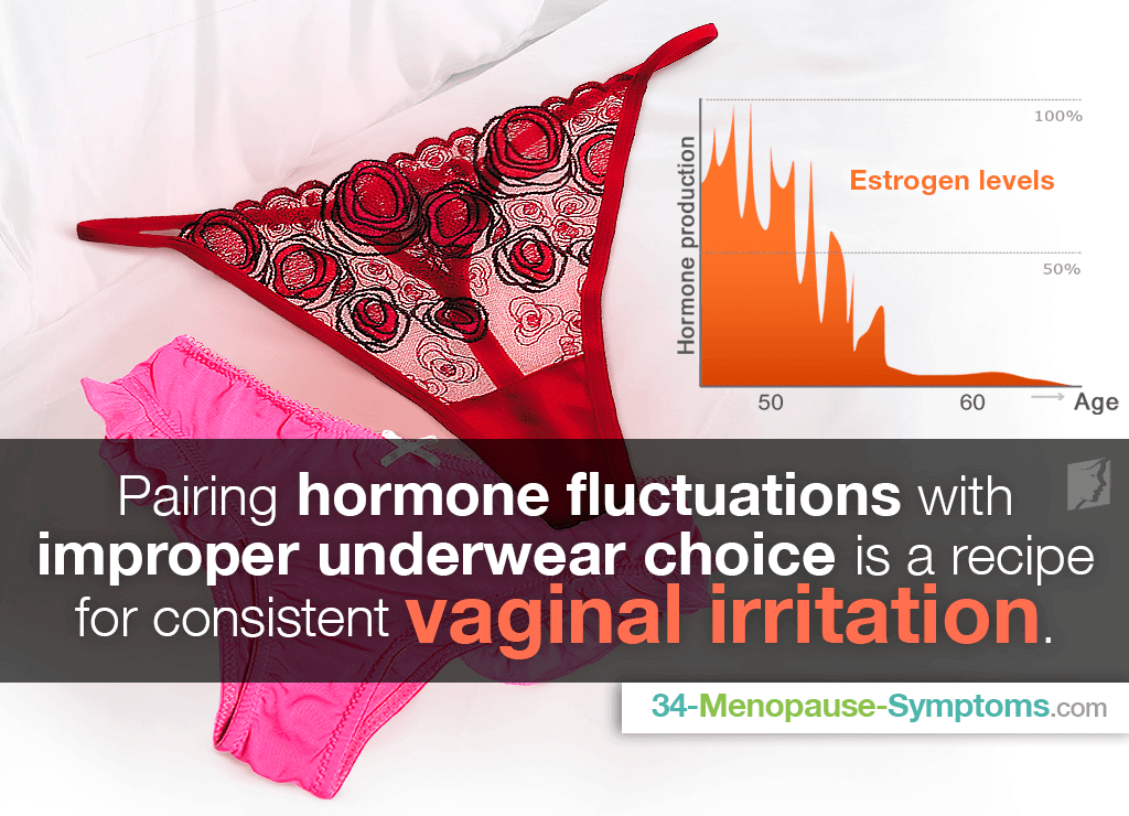 Less moisture in your vagina leads to less moisture in your vulvar area (external genitals). This means you can feel dryness or irritation when putting on your underwear or during normal activities like walking or sitting.